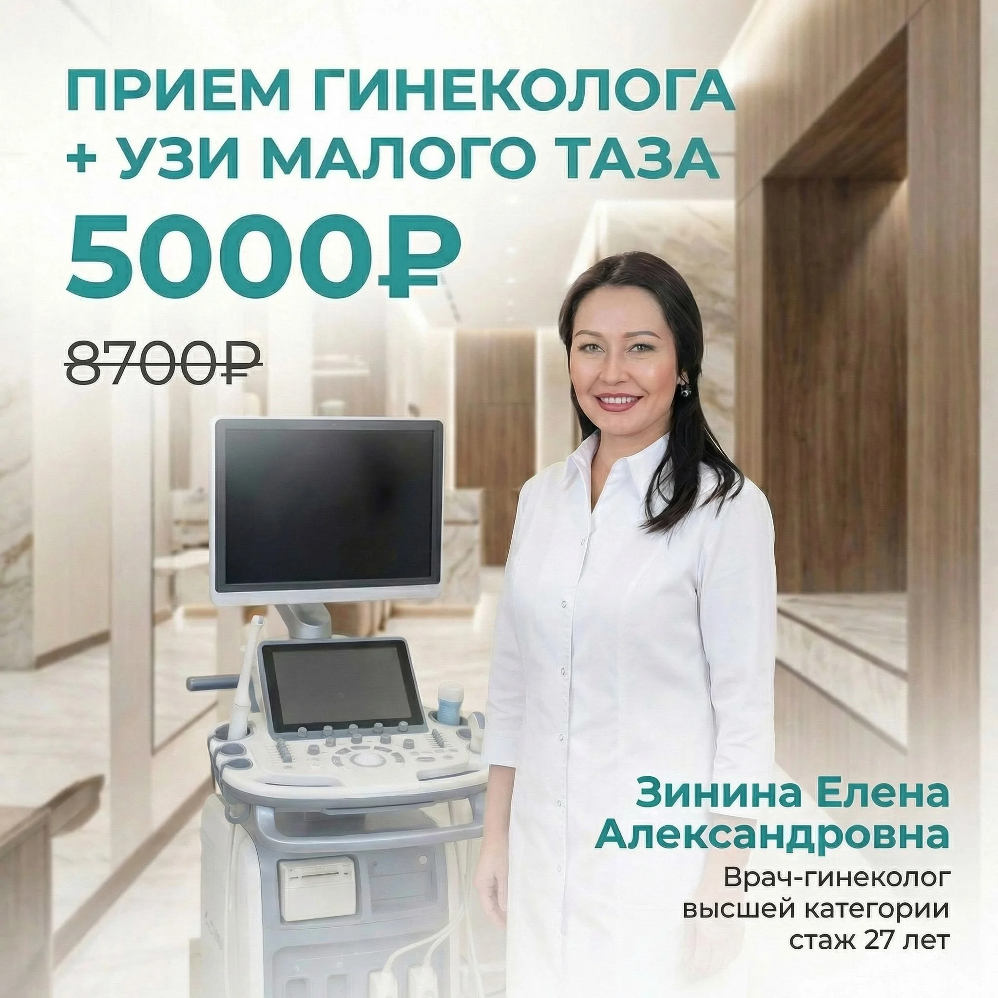 Стоимость приема с УЗИ малого таза – 5000 ₽ 8700 ₽